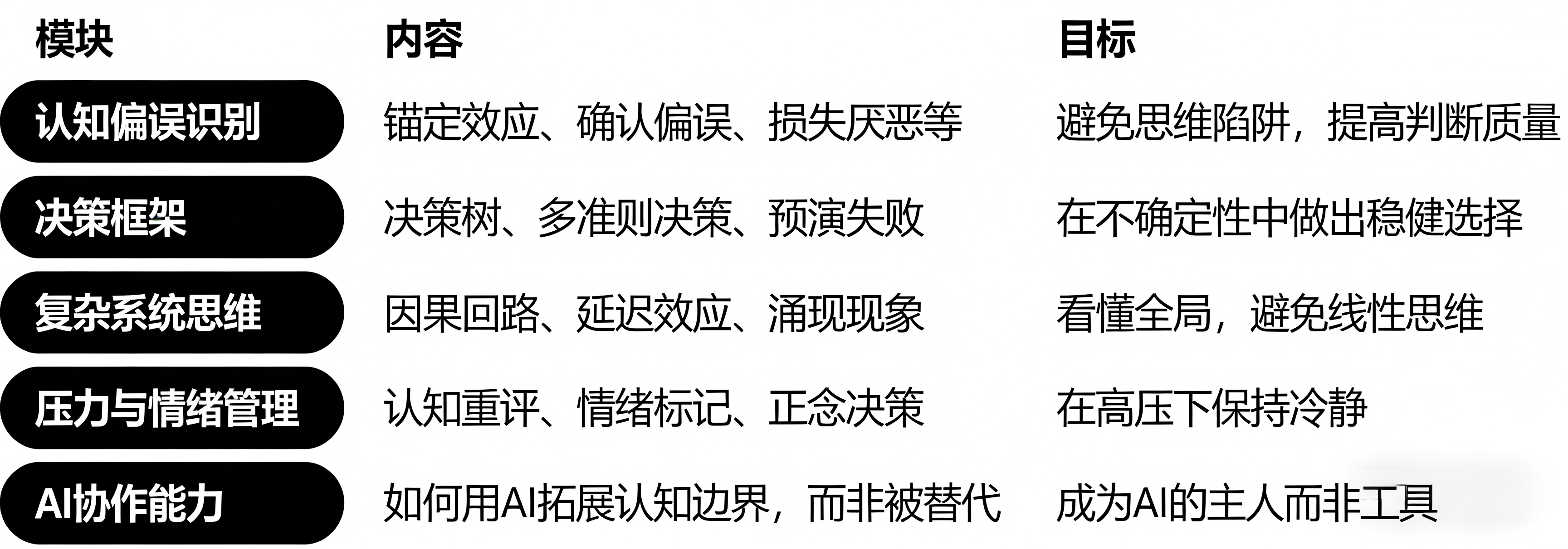 认知升级计划融合了认知科学、行为经济学、复杂系统理论,帮助成年人升级“认知操作系统”。