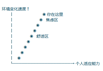当环境变化速度 > 个人适应能力时,人就会焦虑、恐惧、做出错误决策。