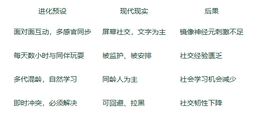 现代孩子的社交环境变化: