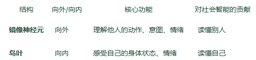 镜像神经元和岛叶,一个向外,一个向内,共同构成社会智能的神经基础。