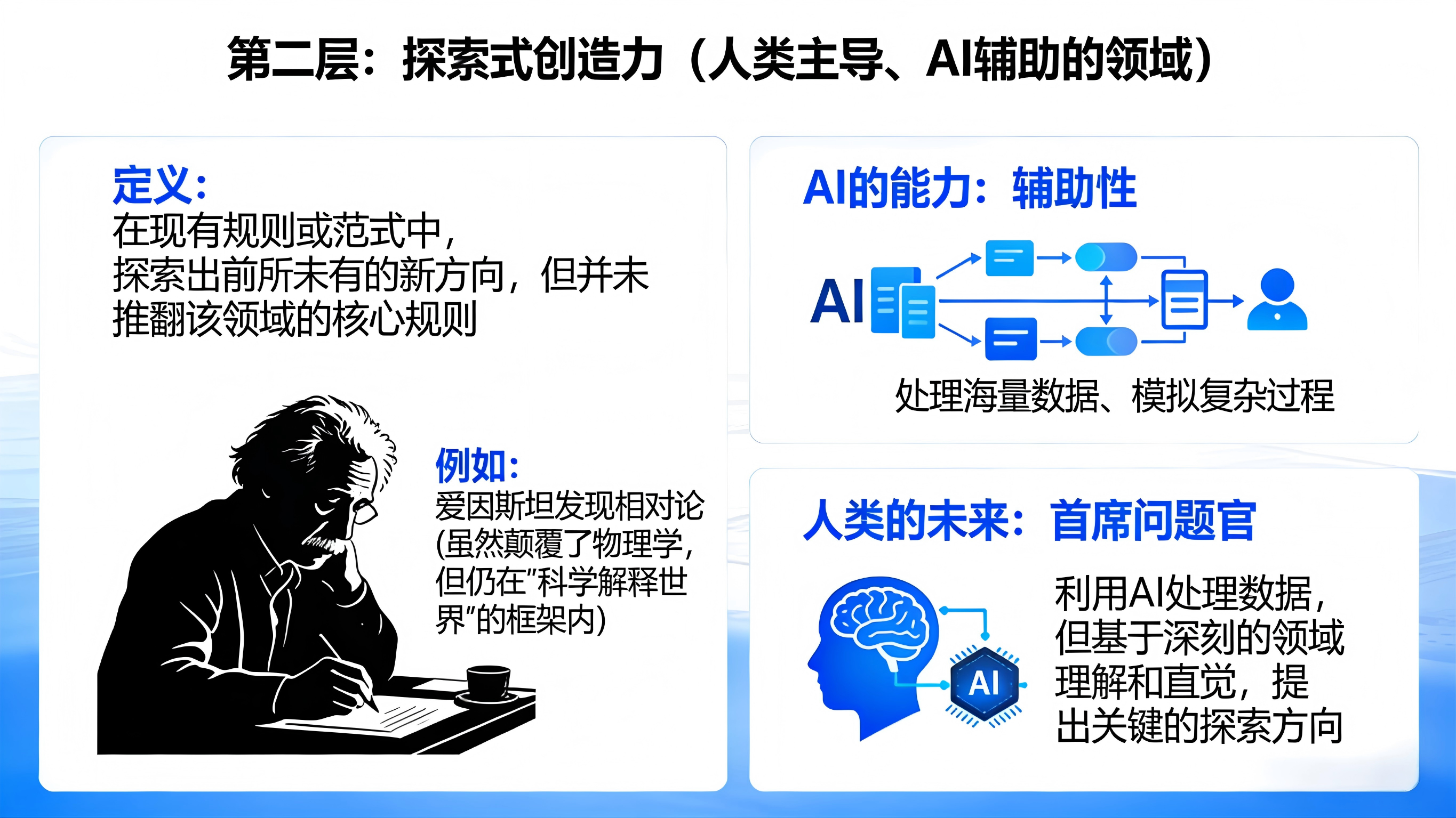 第二层:探索式创造力(人类主导、AI辅助的领域)